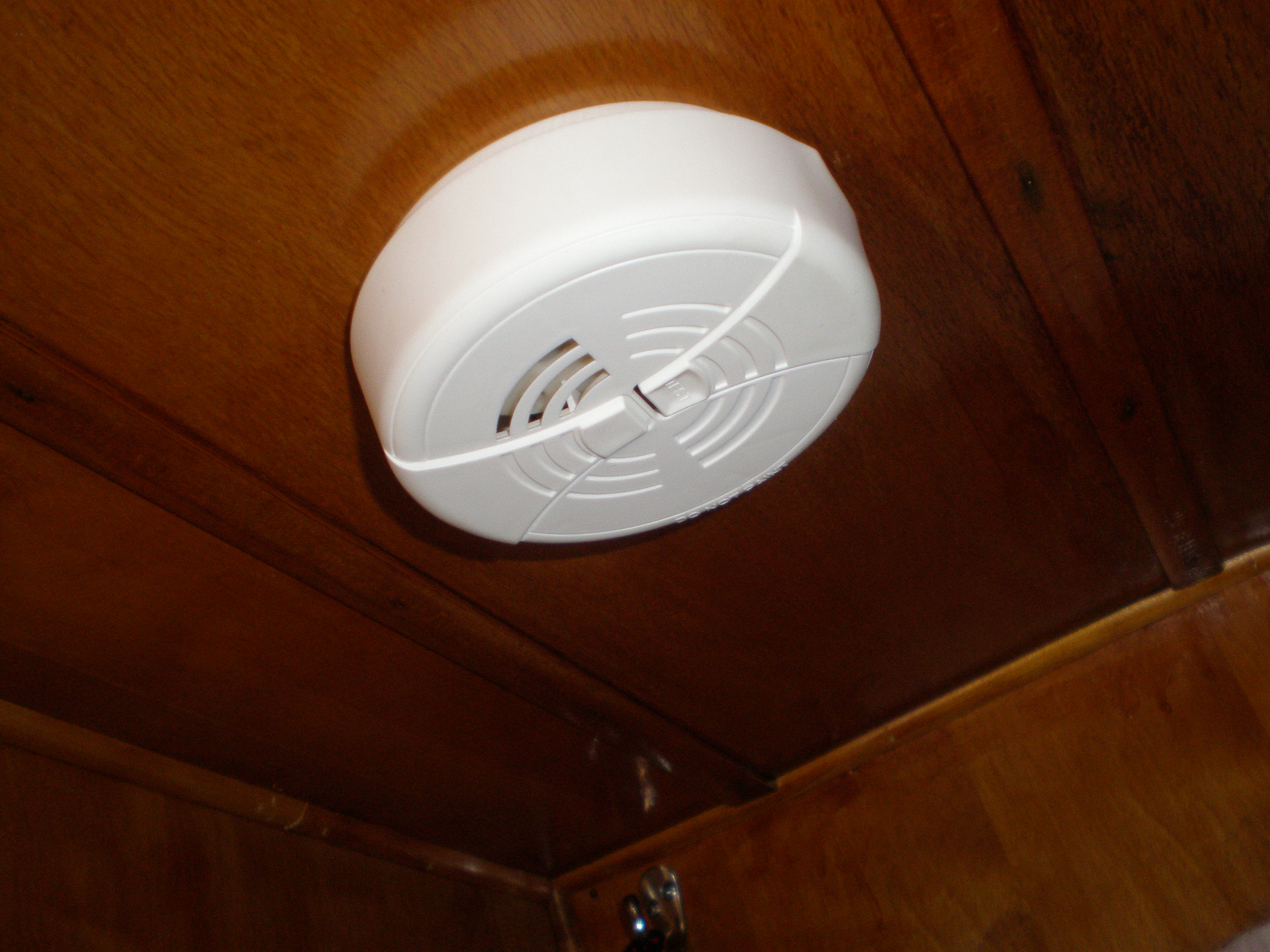 Fire extinguisher, conveniently at the door, and a smoke detector.