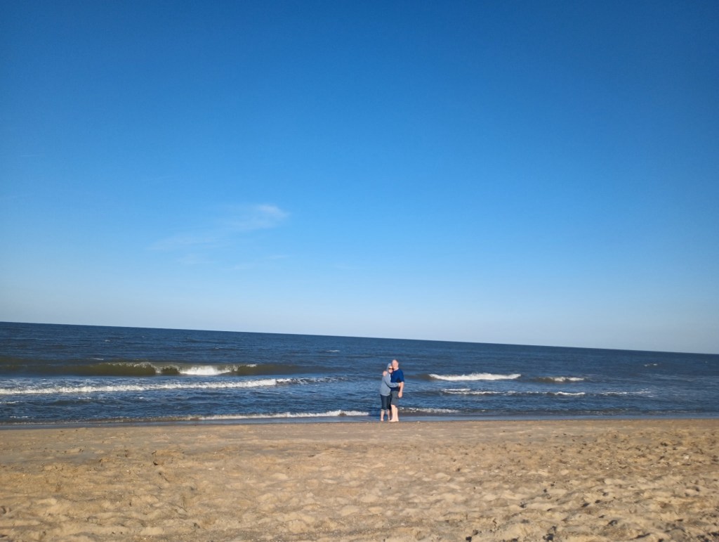 Our feet are wet I swear. I went in to my ankles. If you’re looking for a shot of us swimming in the waves you won’t find it. It was way too cold!
