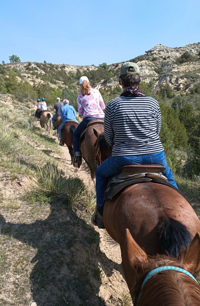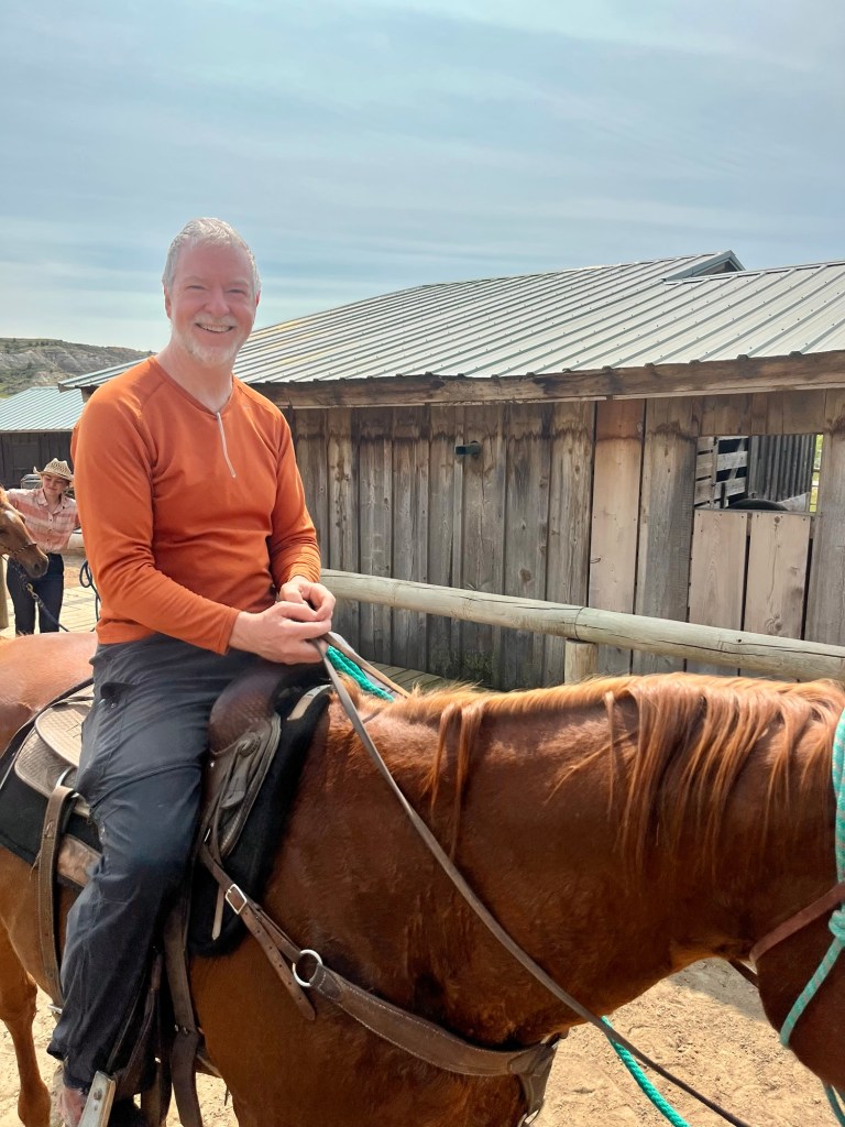 Ever the indulgent husband, David agreed that he would ride horses with me at TRNP. He doesn’t like to ride horses. He says they do what they want. A bicycle or a pair of skis only do what you want.