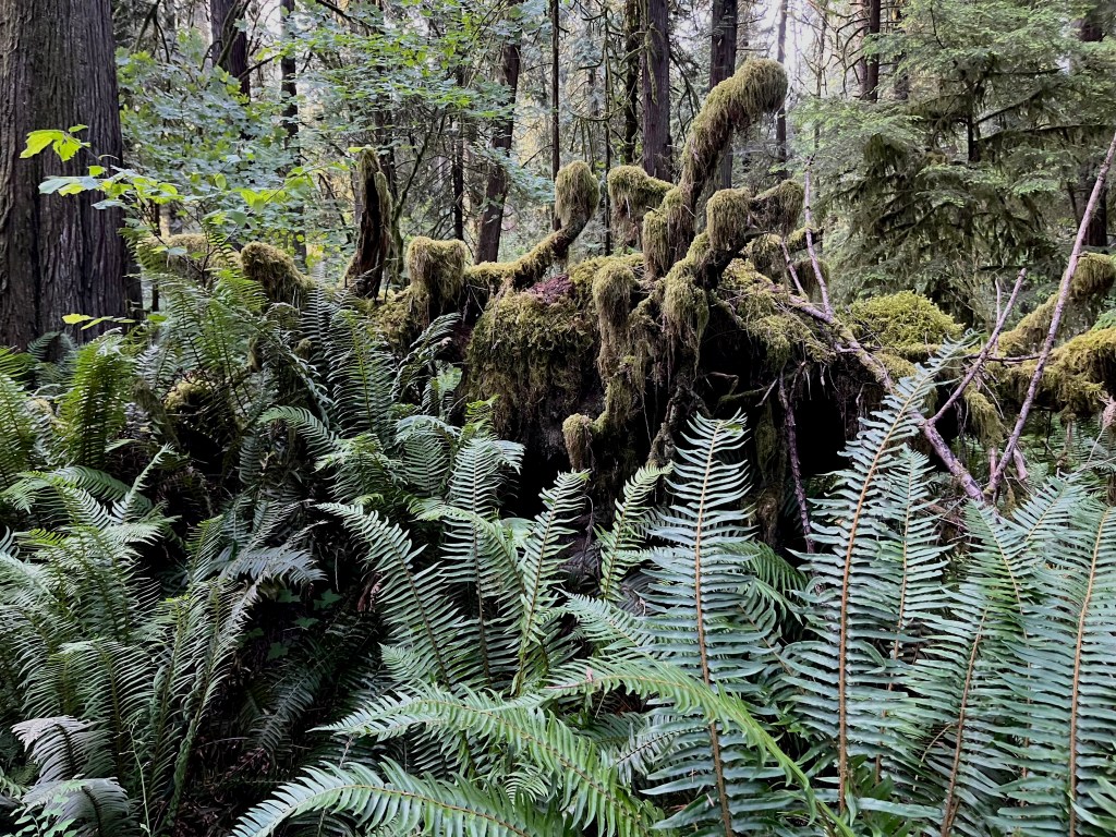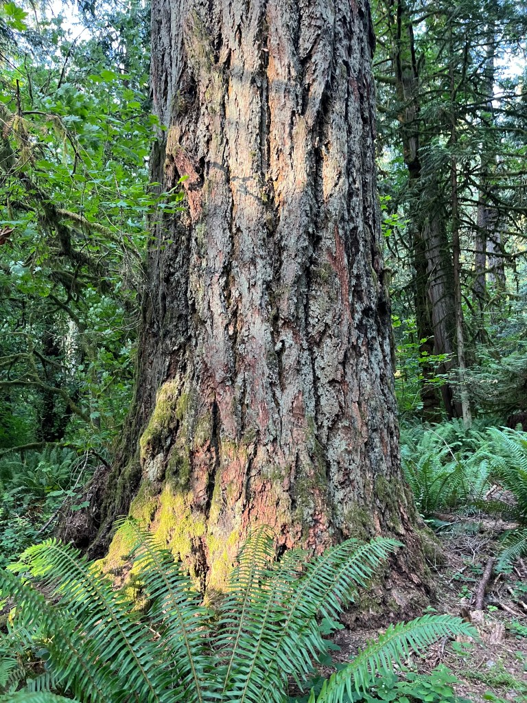 Truly no expert on any of this, I’m sharing my own overwhelming introduction as it rolls from state to state. This road is changing and adding to my viewpoint. I knew from movies and pictures that the West and Pacific Northwest would be a spectacle and an experience. We’ve been in Alpine and Sub-alpine forests. I’d heard a tiny bit about Coastal Rain Forests but the name Pacific Temperate rainforest is the more correct term. These areas get almost 10 feet of rain annually and have mostly moderate temps from 50-75 degrees F year round. Lots of growing time and lots of competition for sunlight. The Alpine areas I love to ski in get snow and somehow survive the wild swings of harsh Winters.