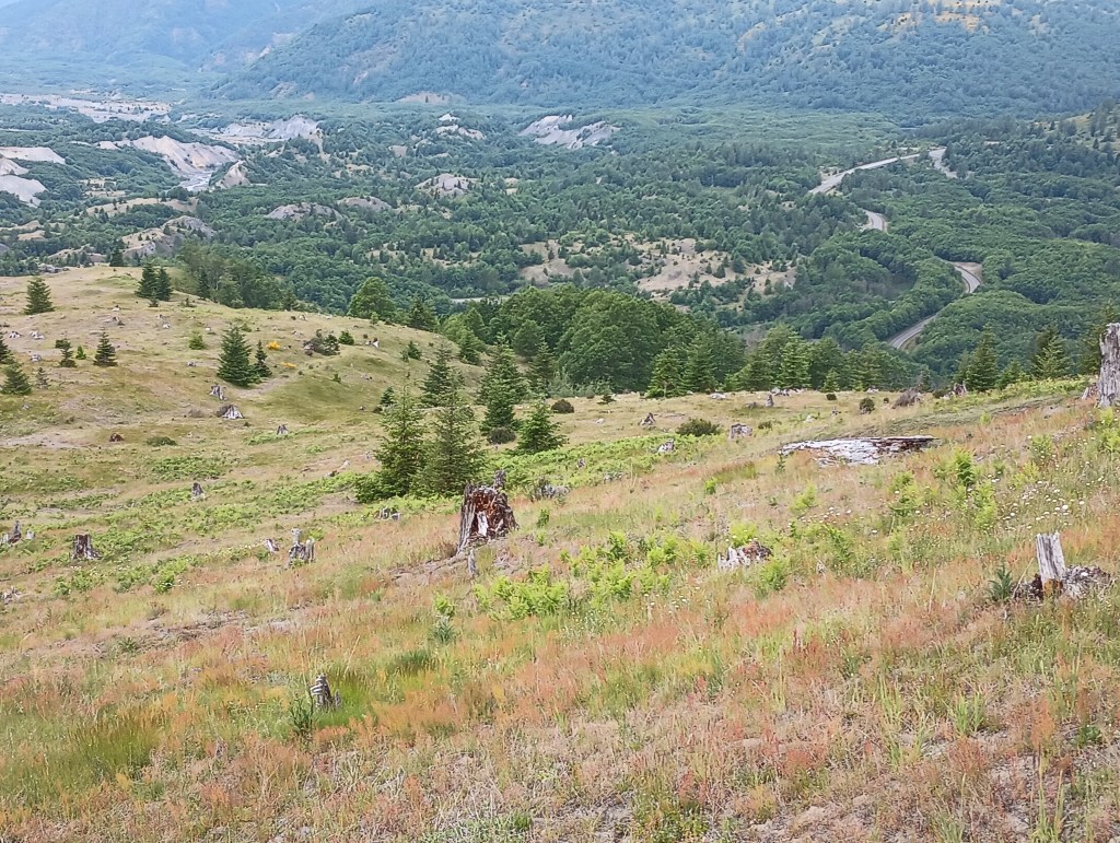 Outside the blast area and on their own properties, the timber companies prepped and planted on a massive scale. The natural areas have deciduous bushes, trees and early conifers but are far far behind the planted regrowth in the timbered areas. These had multiple layers and plots of trees of varied heights depending on when they were planted. The mature ones started in 1982 look “almost” like a natural forest. But, they had a sameness, a lack of variability that betrayed their nature. They were a near mono-culture. They looked “too perfect”. So now I’ve seen layers and layers of nurtured forests. Often they lay 50′ from the road, hidden by a thin veil of uncut trees or bushes only seen over big hills or turns. The secret bare places or trees planted 4, 5, 10 or 15 years ago hiding in plain sight. Enjoy the pics, sorry it took so long to share.