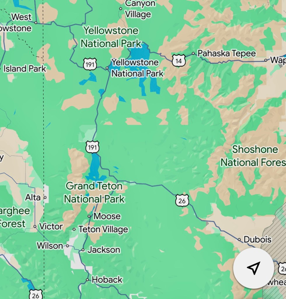 David and I arrived in Jackson Hole, WY, just down the road from the park, in drizzly, chilly weather. Jackson is an iconic Western town in the valley below the mountain range. One of the disadvantages of getting old is that things change over time. What I remember from 50 years ago as a tiny town with people riding horses in the streets is now bursting at the seams. So many cars. So many stores and outlets and office buildings. I’m sure somehow that, if I were to see Jackson for the first time today, I would love it. I was actually ready to bolt for home at this point but David, intrepid David, reminded me how much I had been hoping to stop in to the Tetons on this trip.