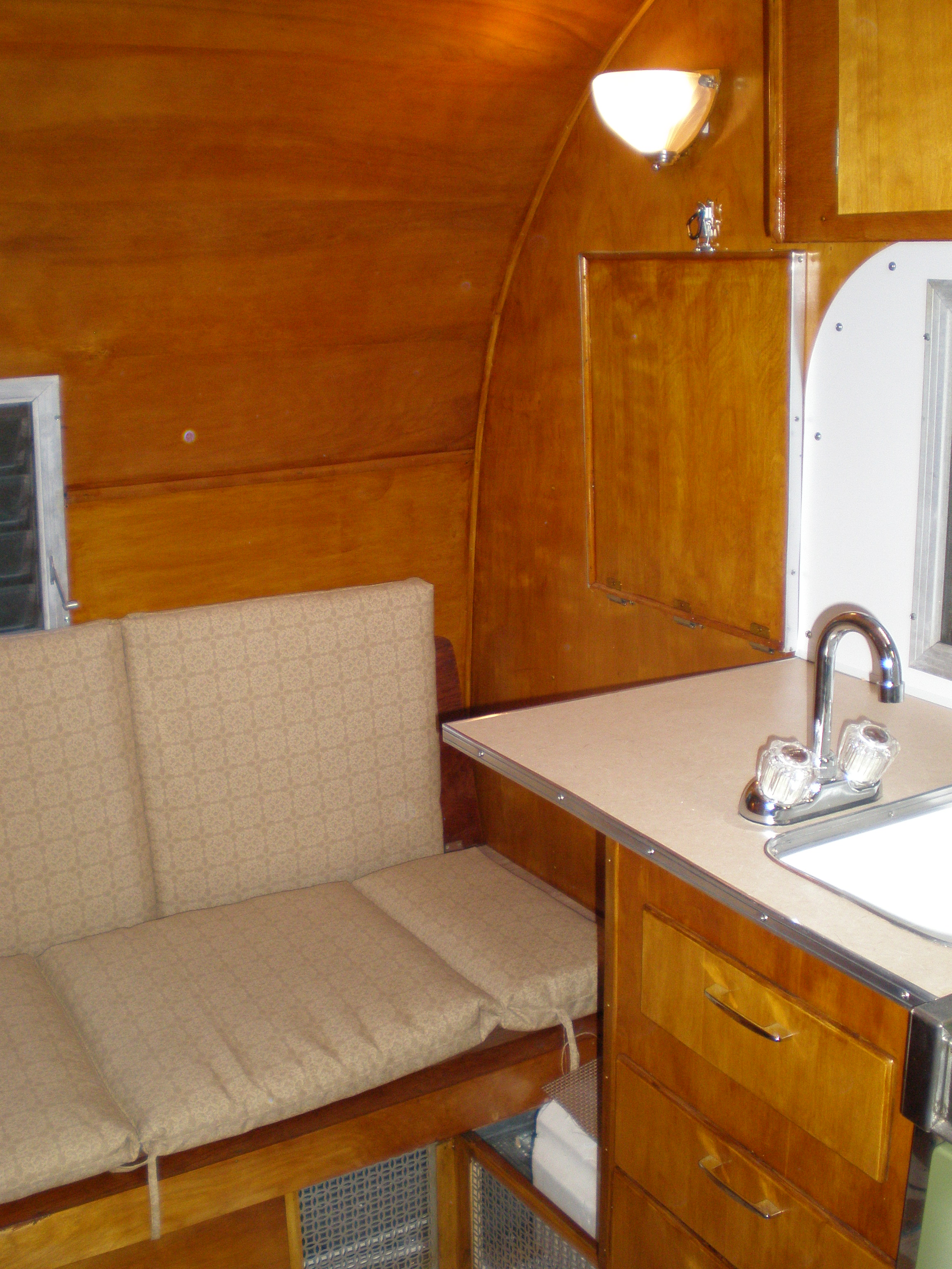 The second year followed with three test trips where we took notes on what the interior needed, how to rearrange and how to weather a real Winter.  I even did a solo trip to the Catskills for the cold test at 12 degrees F.   The second stage of renovating started this March, after that cold test, when I gutted the interior, insulated, wired, plumbed, ran gas pipes and lines and finally recreated the warm Birch  interior I liked so much about the original.