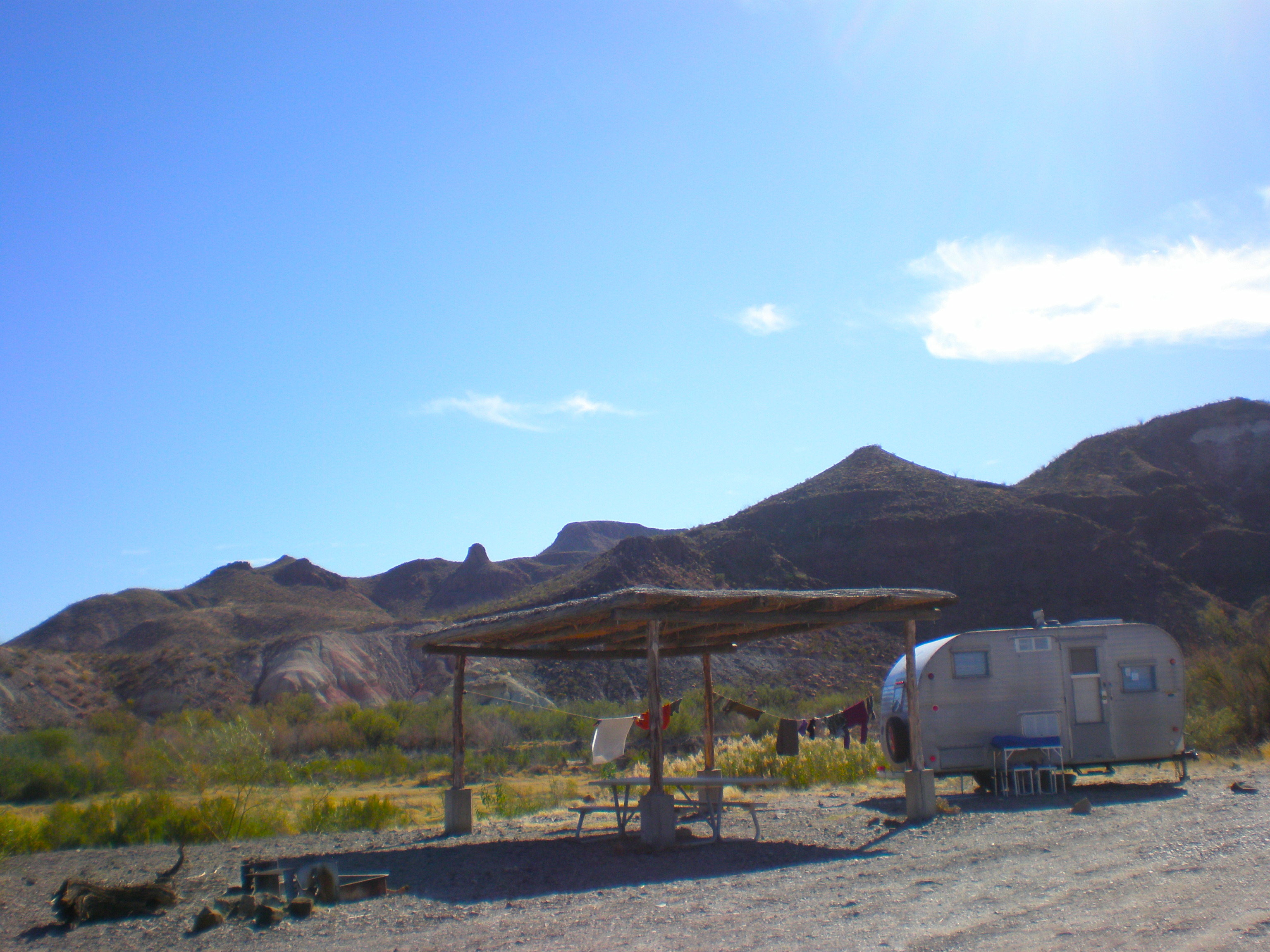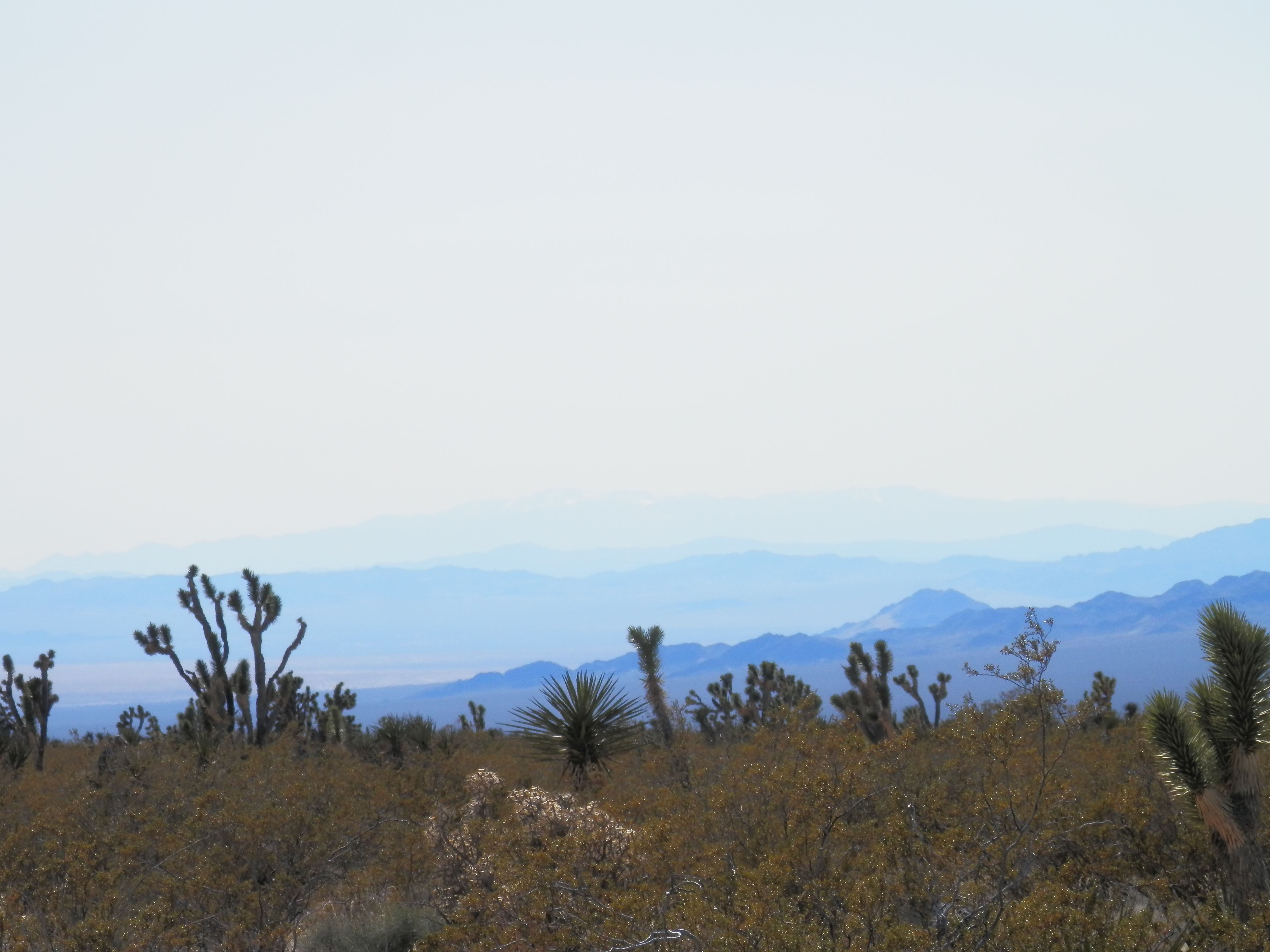 The Mojave delivered its usual dose of challenge for Marfa. A 24 mile climb varying back and forth from moderate to steep. With only a Pinyon bush each mile or two as shade, I pointed out the scarred asphalt on the shoulder from cars that burned…some looked scorched and completely melted with the telling white powder of a fire extinguisher or two. The Transmission light ON AGAIN even with a new radiator! (As of now, a week later, I have added Water-Wetter. Physics to the rescue; it is a wetting agent that allows water/antifreeze to contact metals better. Should be another 10-20% difference and was easy to find in the desert at a Moab auto parts store. Jeeps, 4X4’s, and off-road motorcyclists know about it too. Marfa’s temperature gauge reflects this so far, fingers-crossed again as it stays cooler, “left of center” in all climbs so far).